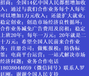 人進寶城全國招商;合作業務減免廣告費用;歡迎全國涉稅企業前來合作;業務合作電話 18038044059 聯系人羅廷剛